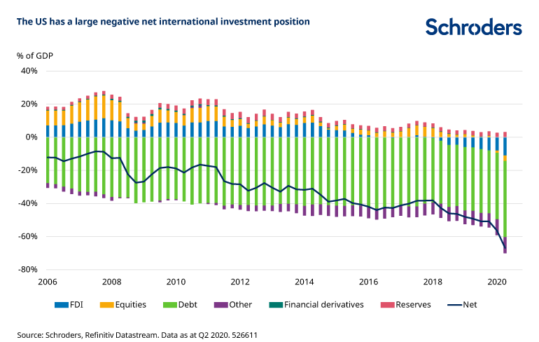 Over the past decade, US capital flows have been underpinned by the notion of American exceptionalism, as US economic growth and capital market returns have been superior to most of the rest of the world. In addition, up until the Covid-19 crisis, US bonds offered higher yields than most other comparable securities. All together, this acted as a powerful gravitational pull for global capital flows.