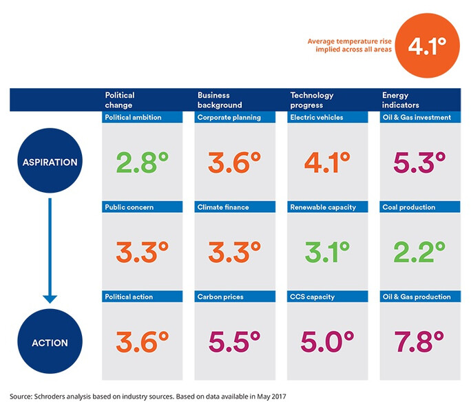 Global temperatures are on course to rise by up to 4°C, twice as far as safe levels, according to a Climate Progress Dashboard developed by the Schroders Sustainability team.