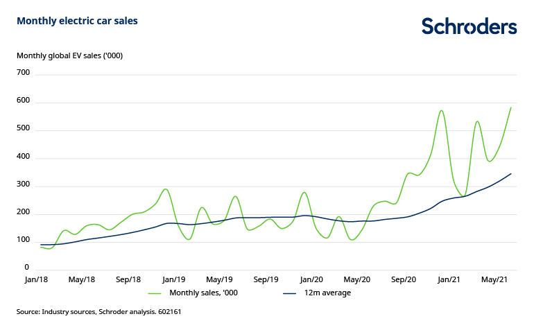 The other change that stands out is the remarkable strength in electric car sales in recent months.