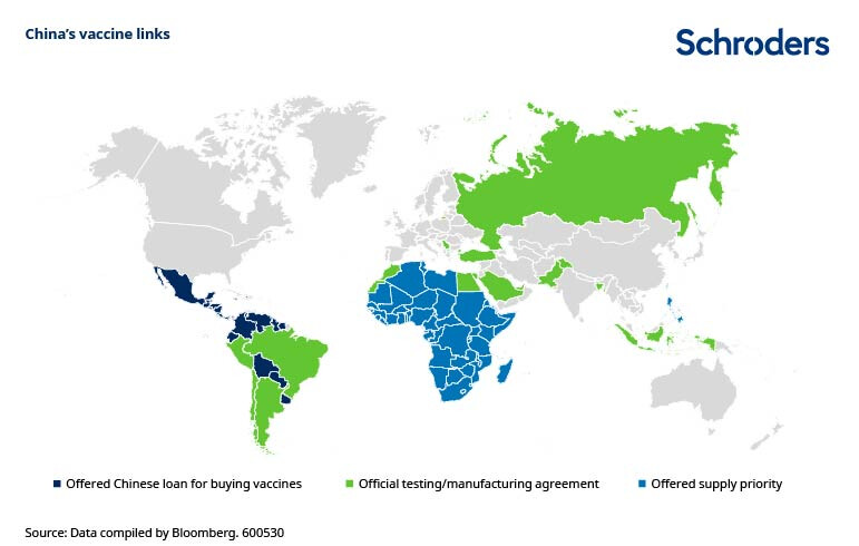 As the maps below show, China and Russia are trying to fill the vaccine vacuum left by hoarding in developed markets. These supplies could be used to build soft power across Africa, Latin America and parts of Asia.