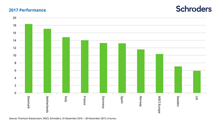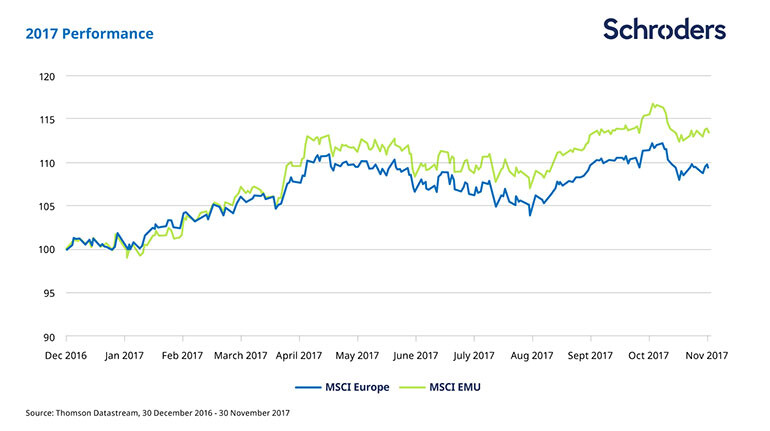 We look back at the drivers of Europe’s stockmarket gains in 2017, including the ongoing economic recovery and diminishing political risk.