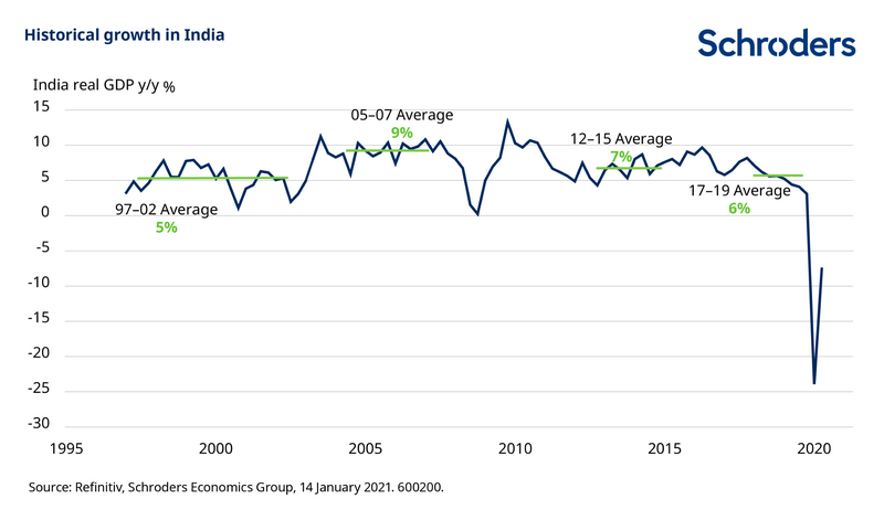 India can raise its potential growth in various ways. It could raise participation in labour force, particularly for females, and levels of labour quality by investing in education. India needs to shift employment from labour-intensive and therefore less productive areas of the economy, such as agriculture, into less labour-intensive, higher productivity parts of the economy, such as manufacturing and even construction. Measures to clean up the banking sector would also help boost credit growth for the required investment. Finally, policymakers should reignite various other elements of structural reform, including land and labour, which could raise productivity across both services and agriculture. Investors considering India should watch out for any progress in these areas.