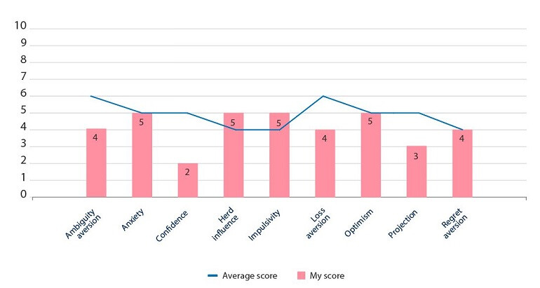 Finally, my score on “projection”, at around half the average, offered reassurance as a value investor. This is a bias where you assume the future will be like the present. It persuades investors, often to their cost, to buy certain sectors in the stockmarket just because they have done well in the recent past.