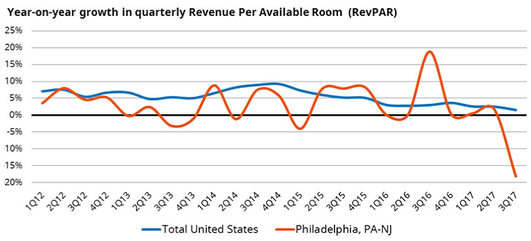 These unique ‘compression events’ helped local hotels to outperform the national average, but have created tough growth benchmarks. Revenue in the third-quarter of 2017 is down 17% year-on-year due to lower occupancy and rates.