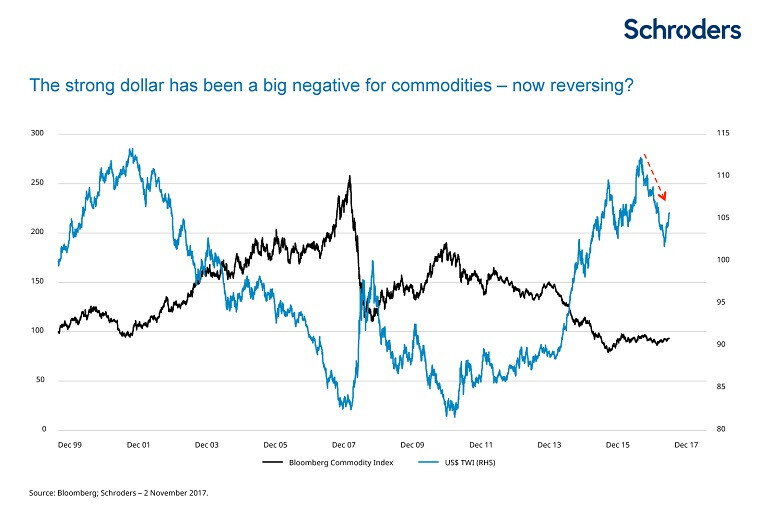 We believe that the recovery in commodity prices that started in early 2016 and paused in 2017 is likely to continue in 2018. Underlying supply and demand balances are increasingly positive in key energy, metals and select agricultural markets. Importantly, the structural outlook for the dollar looks increasingly weak, while global inflation has likely bottomed.