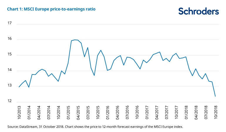 While European companies have not benefited from the share buyback bonanza2 experienced in the US, the dividend yield on European equities is a very healthy 3.7% (MSCI Europe, as at 31 October 2018) and overall corporate balance sheets are in rude health.