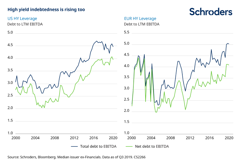 While there has been some fundamental improvement in various low triple-B rated issuers, we believe that earnings growth, which has moderated in recent quarters, could remain weak. Our current view is that earnings would remain under pressure if we see margin deterioration. This deterioration could come from a “de-globalisation”, a slide in productivity or rising labour costs. Current estimates of an earnings rebound in 2020 look overly-optimistic.