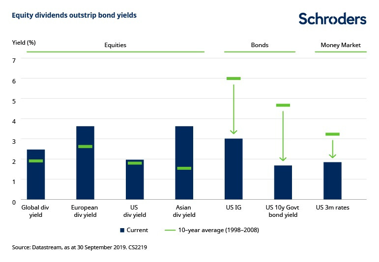 In 2019, many central banks, such as the US Federal Reserve (Fed), cut interest rates rather than raising them. This low interest rate environment looks set to persist in 2020 with the Schroder Economics Team forecasting one more interest rate cut from the Fed. Income seekers will not be able to rely on cash savings or low risk government bonds to provide the income they want.