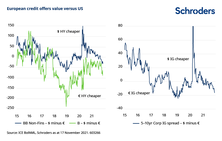 While investment grade corporate bond valuations are not cheap, they are well underpinned and should be stable, provided policy tapering and adjustments unfold as expected. US investment grade continues to offer reasonable income return, partly due to higher US Treasury yields, drawing interest from foreign investors. European yields are lower, but spreads offer more value.