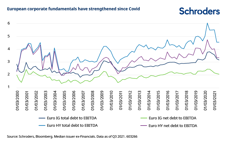 The rebound in company earnings since March 2020 has fed into substantial balance sheet strengthening, giving strong support to credit markets. Scope for further improvement is likely to be limited from here however.