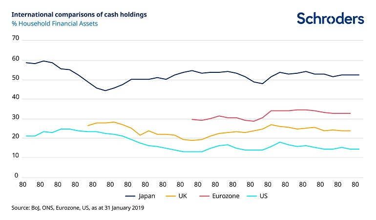 It may seem logical to assume that low returns on cash savings would prompt retail investors to move away from cash and into higher risk assets that potentially offer a higher return. To explore this assumption, we look at the example of Japan which has experienced a low interest rate environment for 20 years.