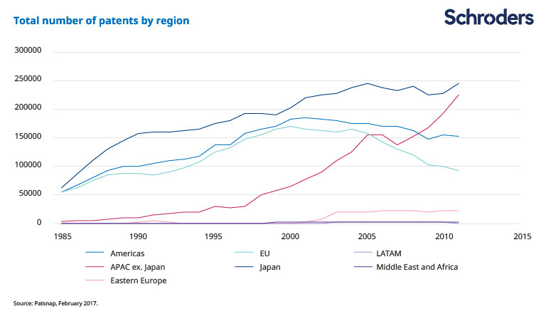 Budgets for research and development (R&D) are rising for many Asian companies and the evidence of the positive effects of this are encouraging (see chart below).