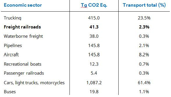 As the table below illustrates, the trucking industry accounts for 23.5% of all US transportation emissions. This piece of the emission puzzle can either be tackled by a shift from combustion engines to electric trucks (Tesla has a plan and a product on the way here), or by a shift in freight from road to rail.