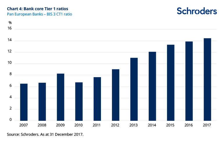 Regulatory capital requirements have materially increased. Banks and their investors have had to get to grips with a whole new lexicon of capital buffers. Incredibly, back in 2007 Royal Bank of Scotland would not even disclose its Core Tier 1 capital ratio (subsequently revealed to be below 4% with the broader Pan-European banking sector averaging around 6.5%).