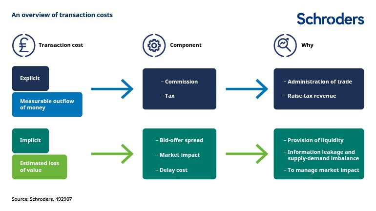 At a fund level, transactions can be triggered for many reasons. The portfolio manager may make an active investment decision to buy or sell a holding. There could be market movements that affect the relative value of a portfolio’s holdings and a need to revert to a specific balance. Investors may be buying or selling units of a fund so that the fund itself has to replicate the purchase or sale of all the underlying holdings to reflect this activity.