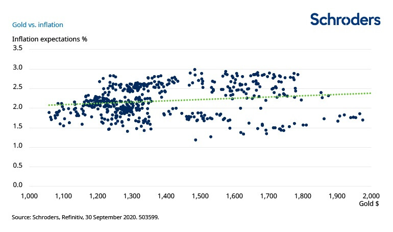 In an extreme doomsday scenario, gold may well be an effective store of value, but the nagging reminder that our money is really just paper is closely linked to the fear of inflation. Hence the popular notion that gold is an inflation hedge.