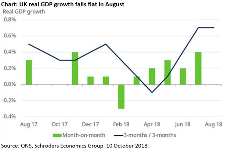 Overall, the headline GDP figures mask some underlying weakness. On a quarterly basis, even if GDP stalls again in September, growth for the third quarter would be 0.6%, which would be the best quarter of growth since the end of 2016. However, it would mean potentially a weak end to the year.