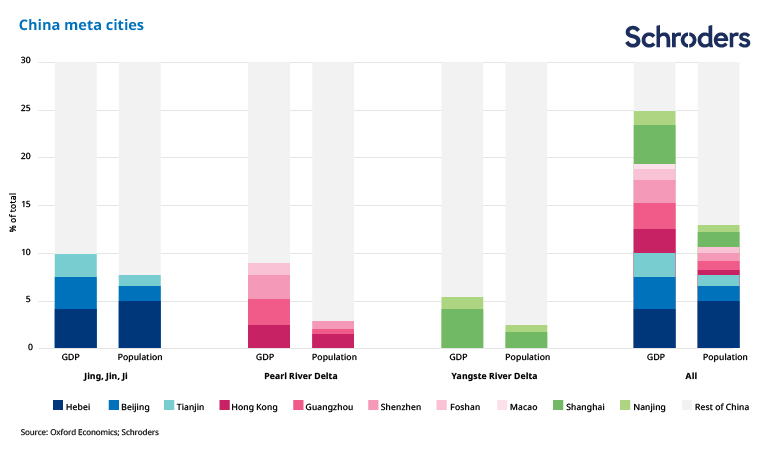 At Schroders Global Cities, we use the term meta city to describe the linking of mega cities via high speed transport and critical infrastructure. In so doing, the sum of these interlinked cities become economically more powerful than the parts.