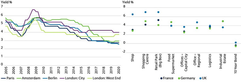 Another reason the office sector looks attractive over the medium term is that UK office yields (cap rates) look good value compared to the rest of western Europe. Prime office yields in the West End of London are normally within 0.5% of those in Paris QCA (Quartier central des affaires), reflecting the fact that they are Europe’s most liquid markets.