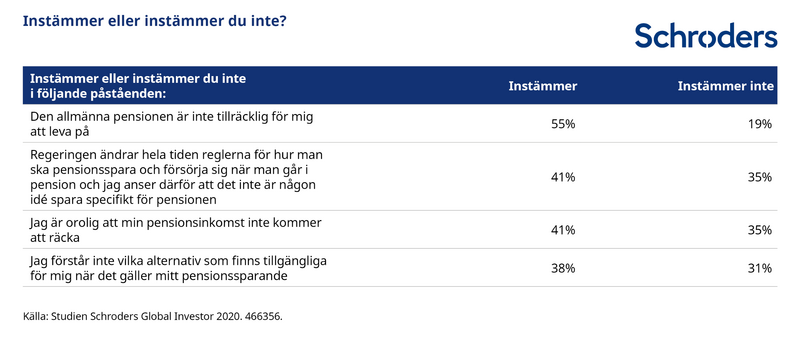 Enligt Schroders Global Investor Study (GIS) 2020 är 41 % av alla investerare globalt oroade över att de inte kommer att ha tillräckliga besparingar för att finansiera pensionen.