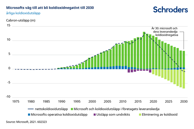 Microsoft har också åtagit sig att vara koldioxidneutralt till 2030 och till 2050 kommer företaget att eliminera hela det koldioxidavtryck som skapats sedan företaget grundades 1975.