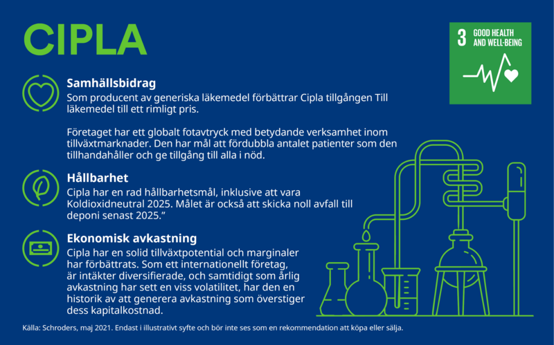 Dessa åtgärder kopplar mest direkt till UN SDG 3 i vår bedömning, men det finns andra SDGs som Cipla också bidrar till.